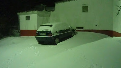 Do conhecimento que temos do Singral,é a primeira vez que temos neve com esta intensidade...só nos resta saber se amanhã conseguimos sair daqui, pois duvidamos que os carros consigam subir a rampa com este gelo no chão, e o resto da estrada não sabemos se não estará pior...a ver vamos.
