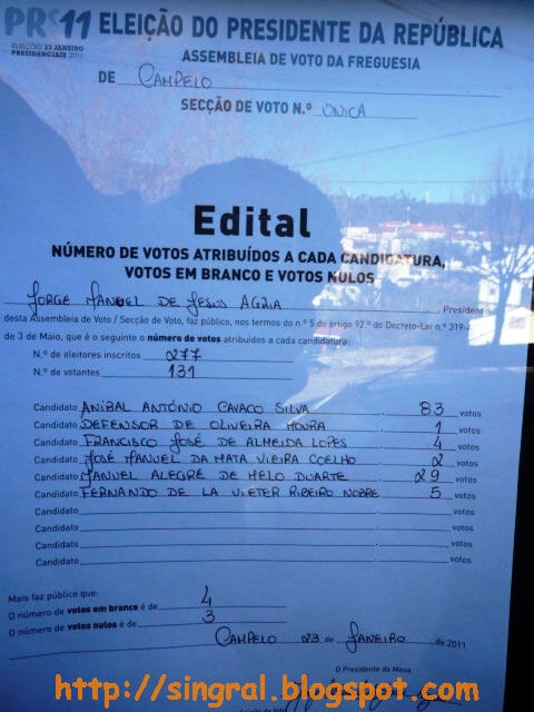 Para os nossos leitores mais interessados, aqui deixo uma foto dos resultados apurados pela assembleia de voto de Campelo.